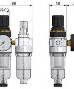 FRL 2 Partes G1/8” 350l/min 0.5-3.0bar/7-44psi Semi-Auto Metal Estándar 0