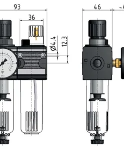 FRL 2 Partes G3/8” 1200l/min 0.5-16.0bar/7-232psi Semi-Auto Metal Multifix 1