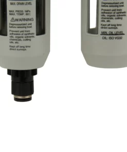 Esta unidad neumática FRL (Filtro Regulador Lubricador) de G1/2″ se utiliza para filtrar contaminantes mayores de 5 μm, regular la presión de salida entre 0,5 – 8,5 bar y lubricar el aire con aceite. Incluye un manómetro. El caudal máximo es de 1300 l/min (utilice siempre el diagrama de caudal para un dimensionamiento correcto). La válvula de drenaje automático se abrirá y cerrará automáticamente en función del nivel de residuos. Adecuado para una entrada máxima de 10 bar y temperaturas entre -5 y 60 °C. El caudal mínimo para el goteo de aceite es de 60 l/min. La capacidad de aceite es de 65 cm3. Para ajustar la presión de salida, tire del volante hacia arriba y gírelo. Bloquee empujando la rueda hacia dentro. Incluye soporte de montaje.