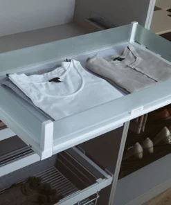 - Cajón blanco con laterales y frontal de cristal de 130mm de alto para muebles de 800mm de ancho.