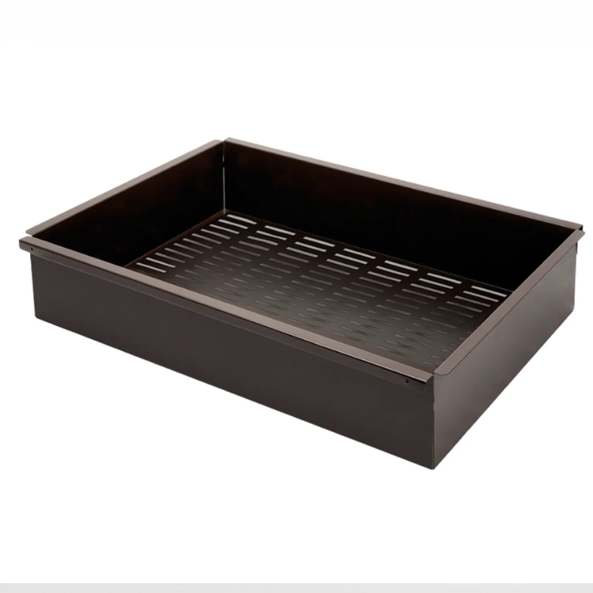 - Cajón modular metálico en acabado marrón para muebles de 700mm de ancho (bordes incluidos) con un alto de 130mm.