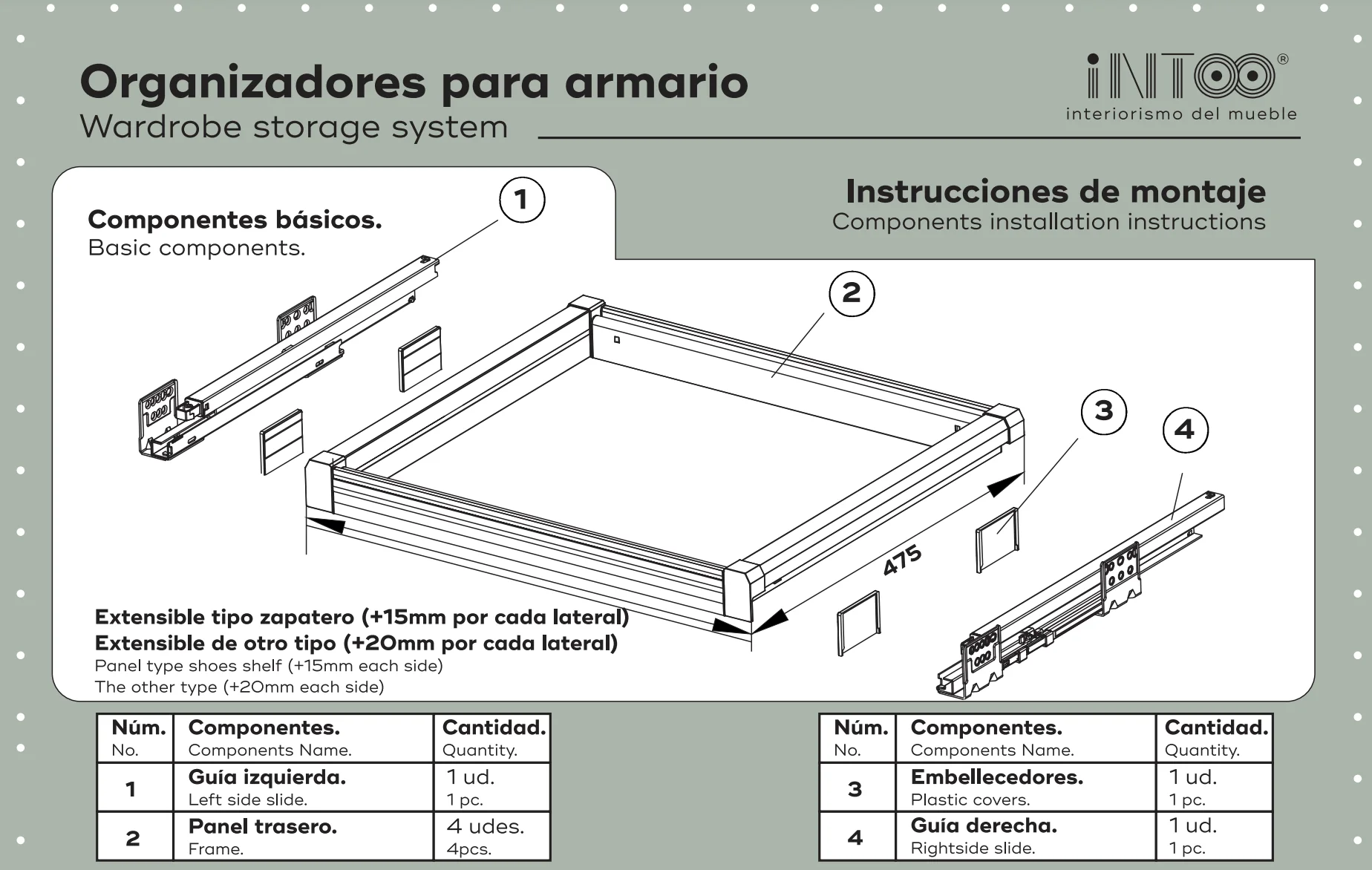 - El ancho del joyero tiene holgura pudiendo adaptarse de 864 a 914mm.