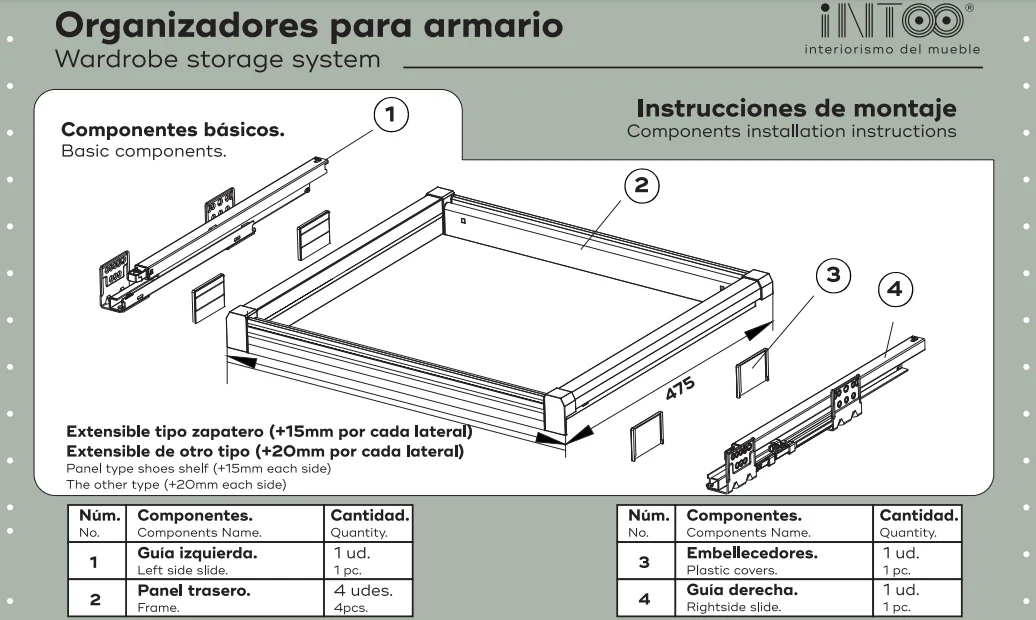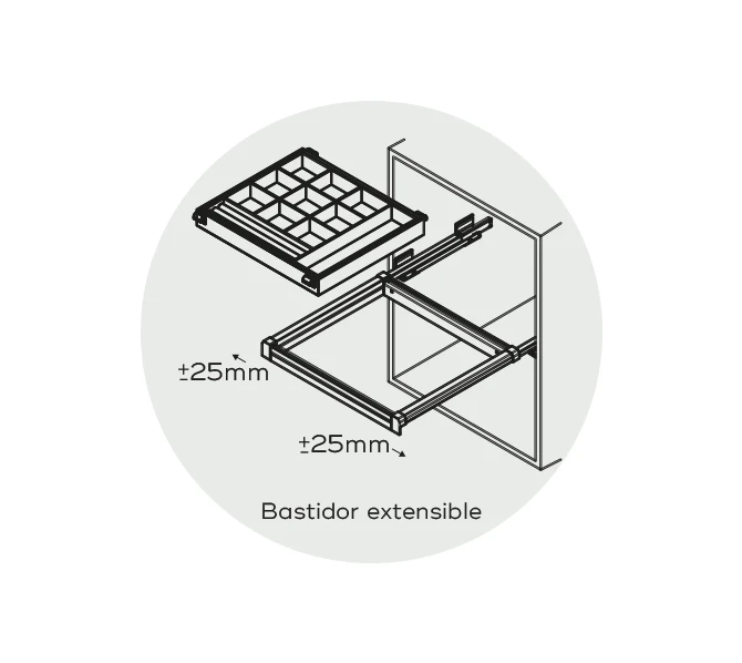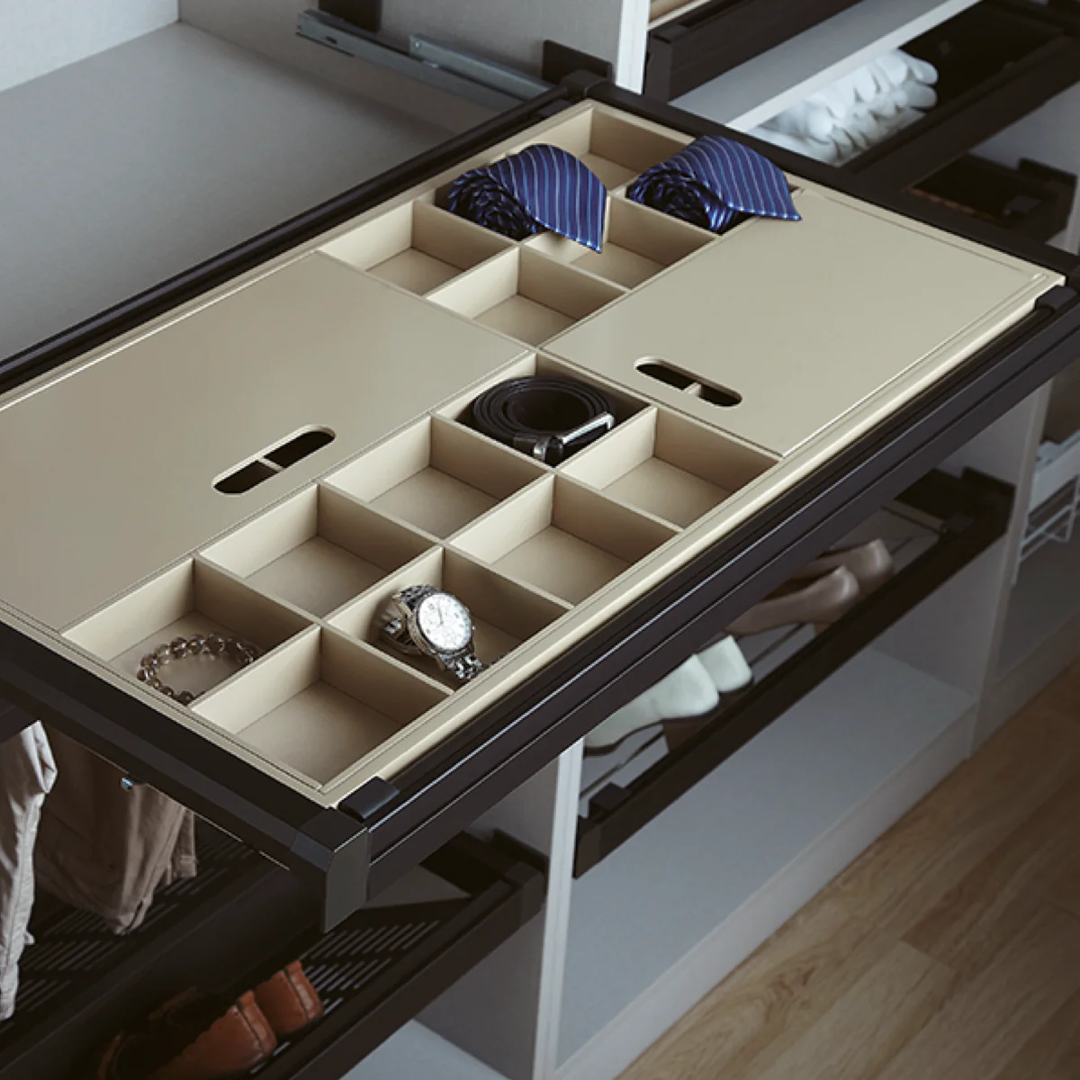 Cajón organizador joyero con dos tapas para muebles de 800mm de ancho
