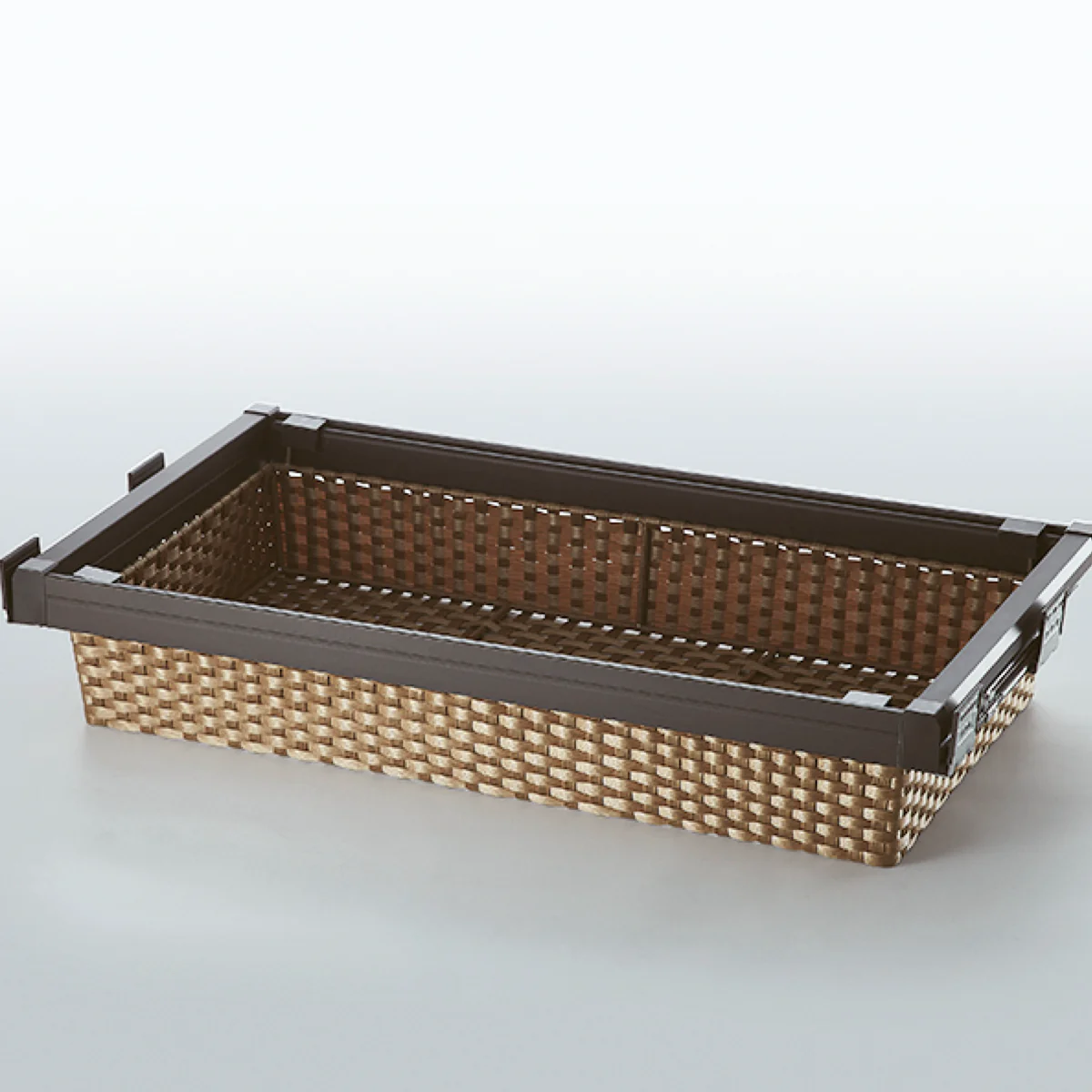- Cesta marrón de ratán trenzado acabado marrón para armarios de 700mm de ancho con un ajuste de 664 a 714mm.
