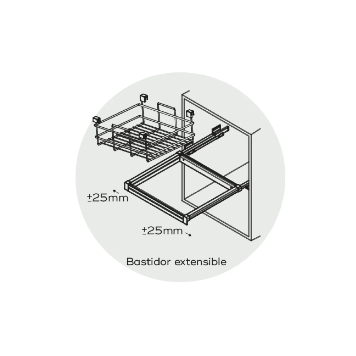 - Cesta marrón de varillas metálicas acabado marrón para armarios de 900mm de ancho con un ajuste de 864 a 914mm.