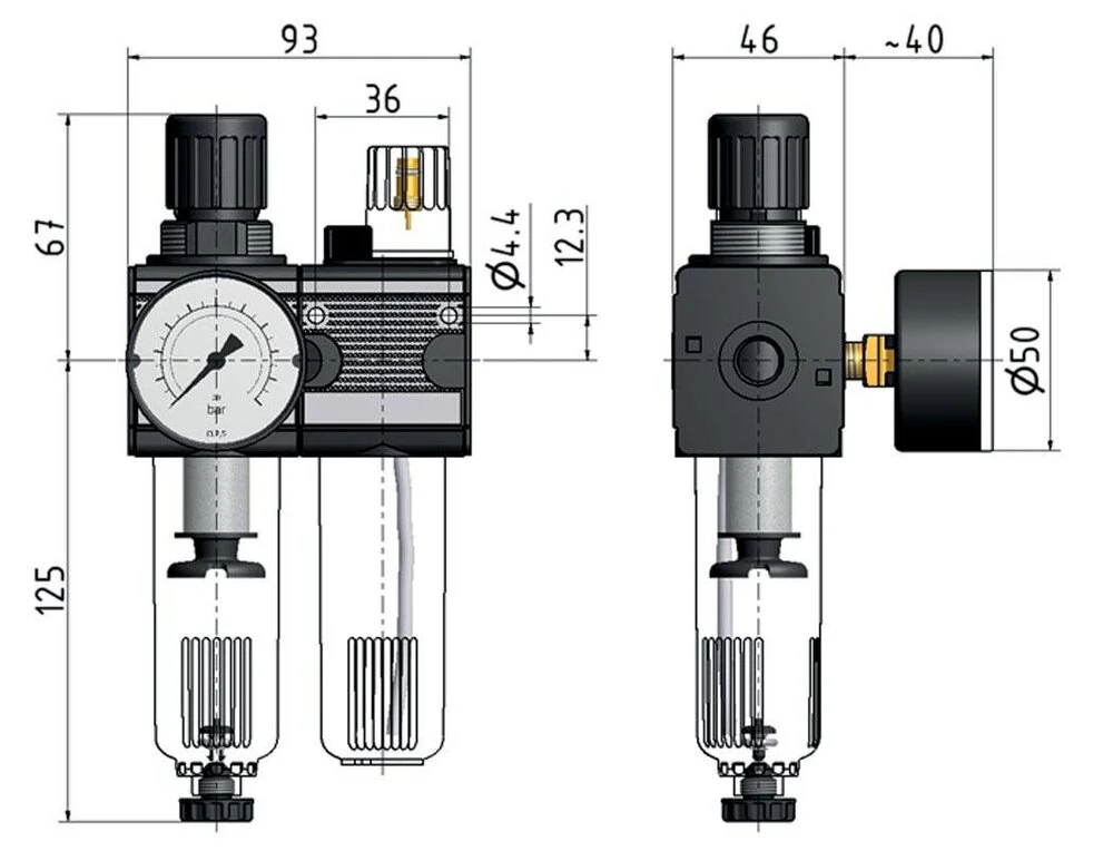 FRL 2 Partes G3/8” 3500l/min 0.1-2.0bar/1-29psi Semi-Auto Metal Futura 2