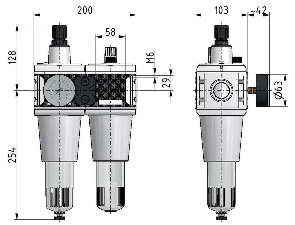 FRL 2 Partes G1/2” 3500l/min 0.1-1.0bar/1-14psi Semi-Auto Metal Futura 2