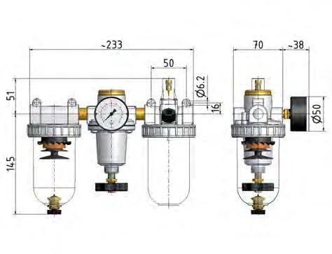 2 unidades frl futura 2 3/8 - 1/2" 3500 l/min