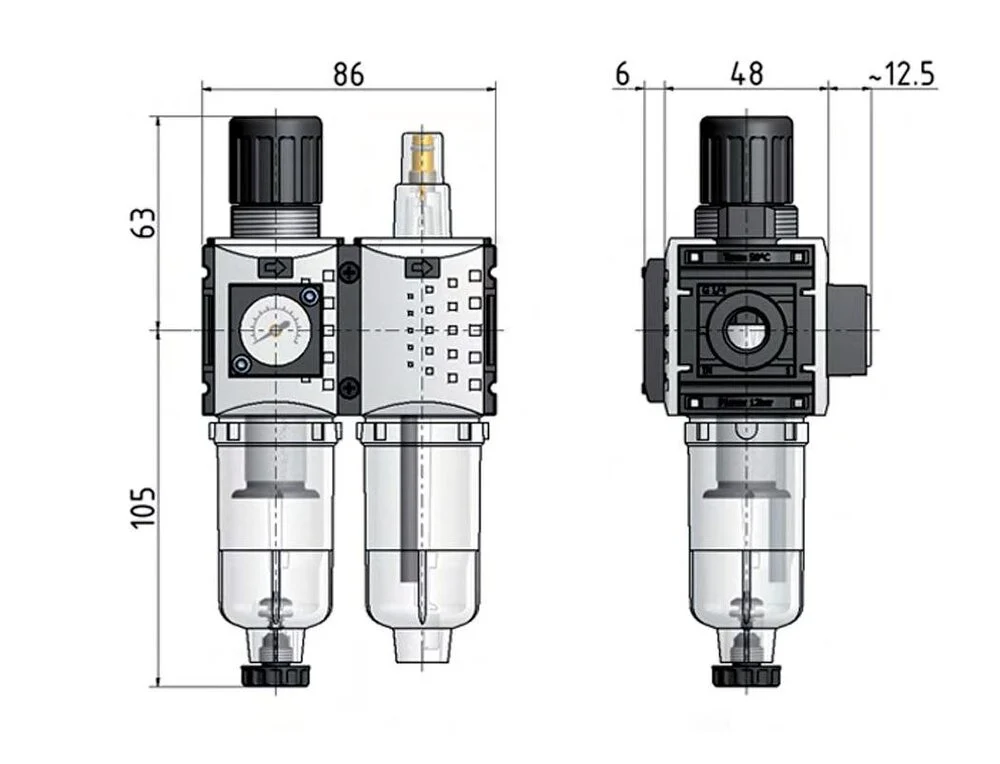 FRL G1/4” 800l/min 0.2-4.0bar/3-58psi Futura 0