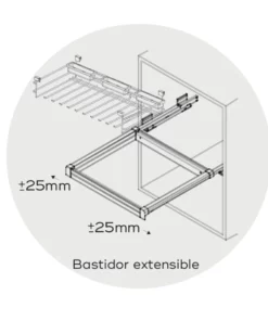 - Pantalonero para armarios de 600mm de ancho ajustable de 564 a 614mm con guías deslizantes incluidas con cierre silencioso amortiguado.