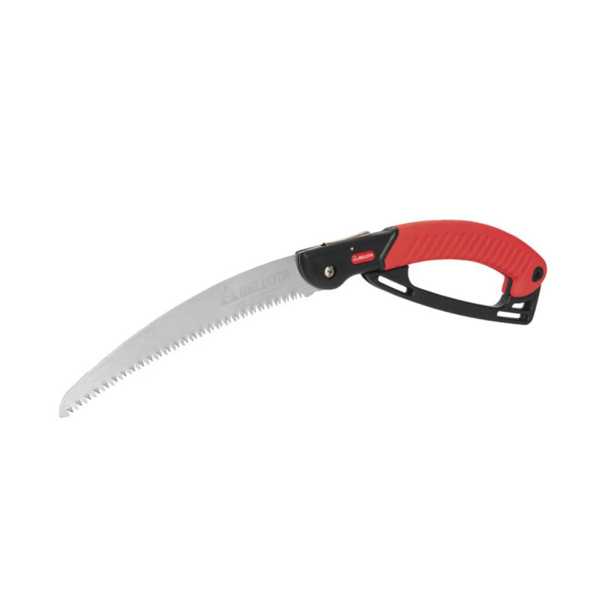 – El serrucho plegable Bellota, cuenta con una hoja resistente, afilada con un dentado japonés capaz de cortar ramas gruesas generando cortes amplios y precisos.