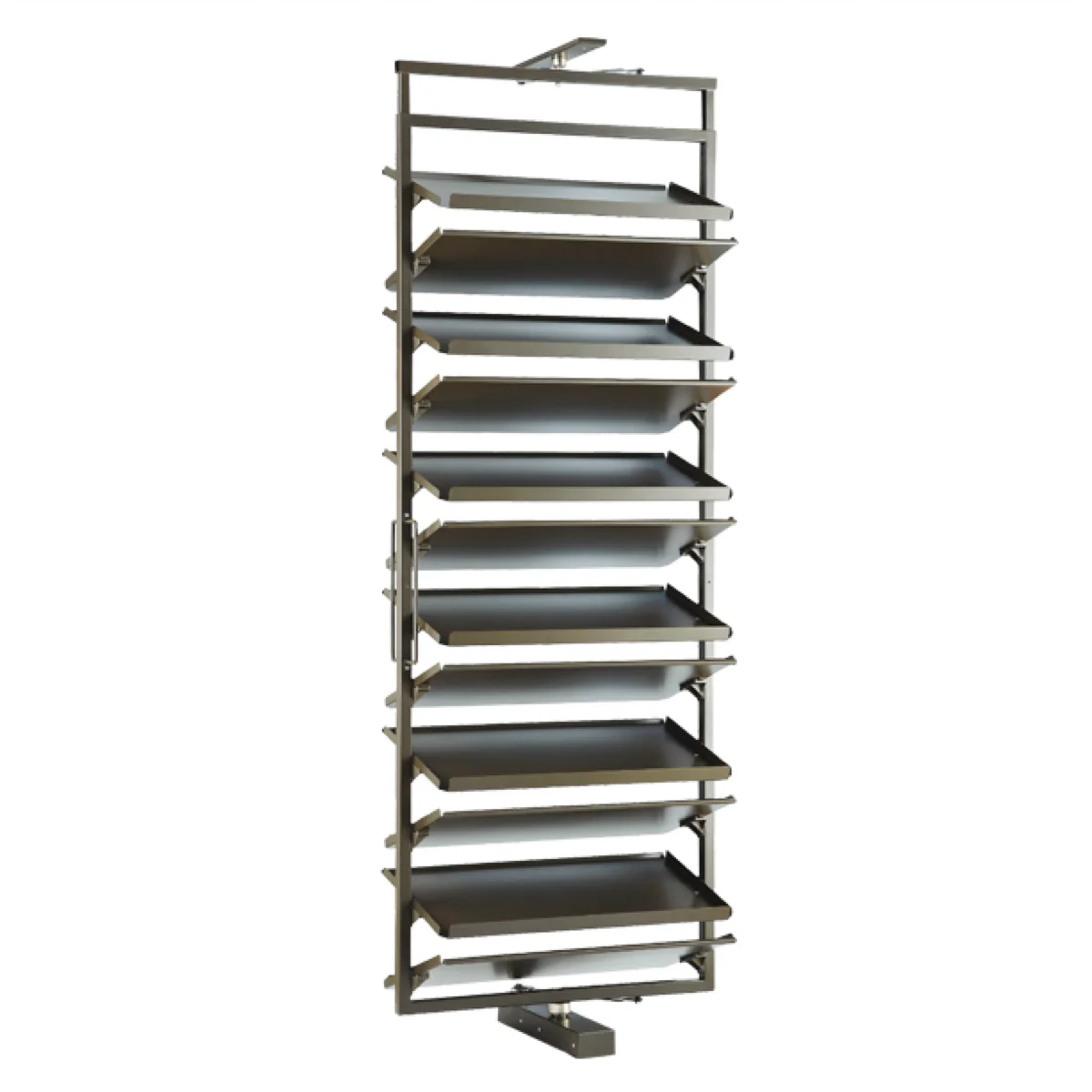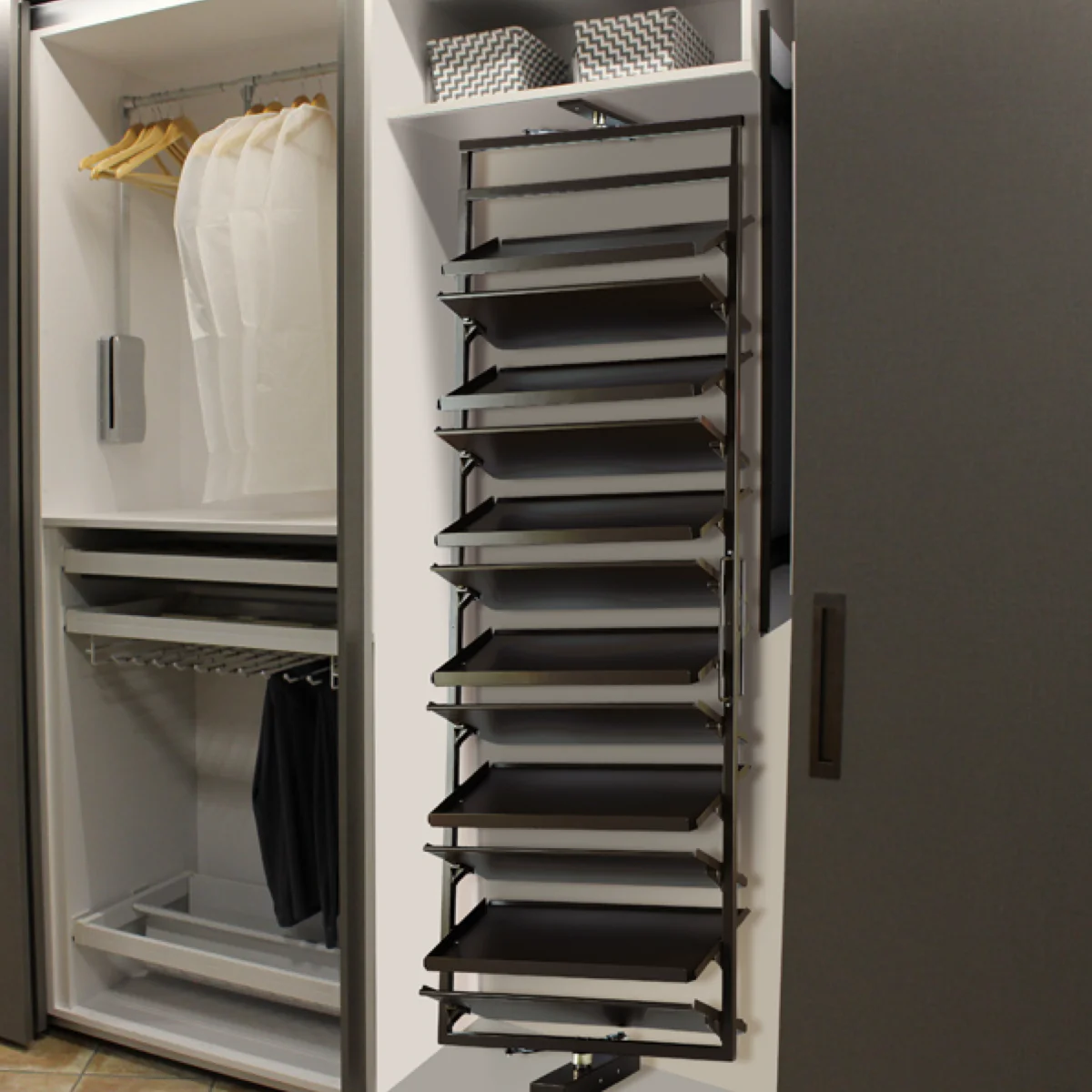 - Zapatero giratorio extensible de 12 baldas de altura regulable de 2000 a 2250mm.